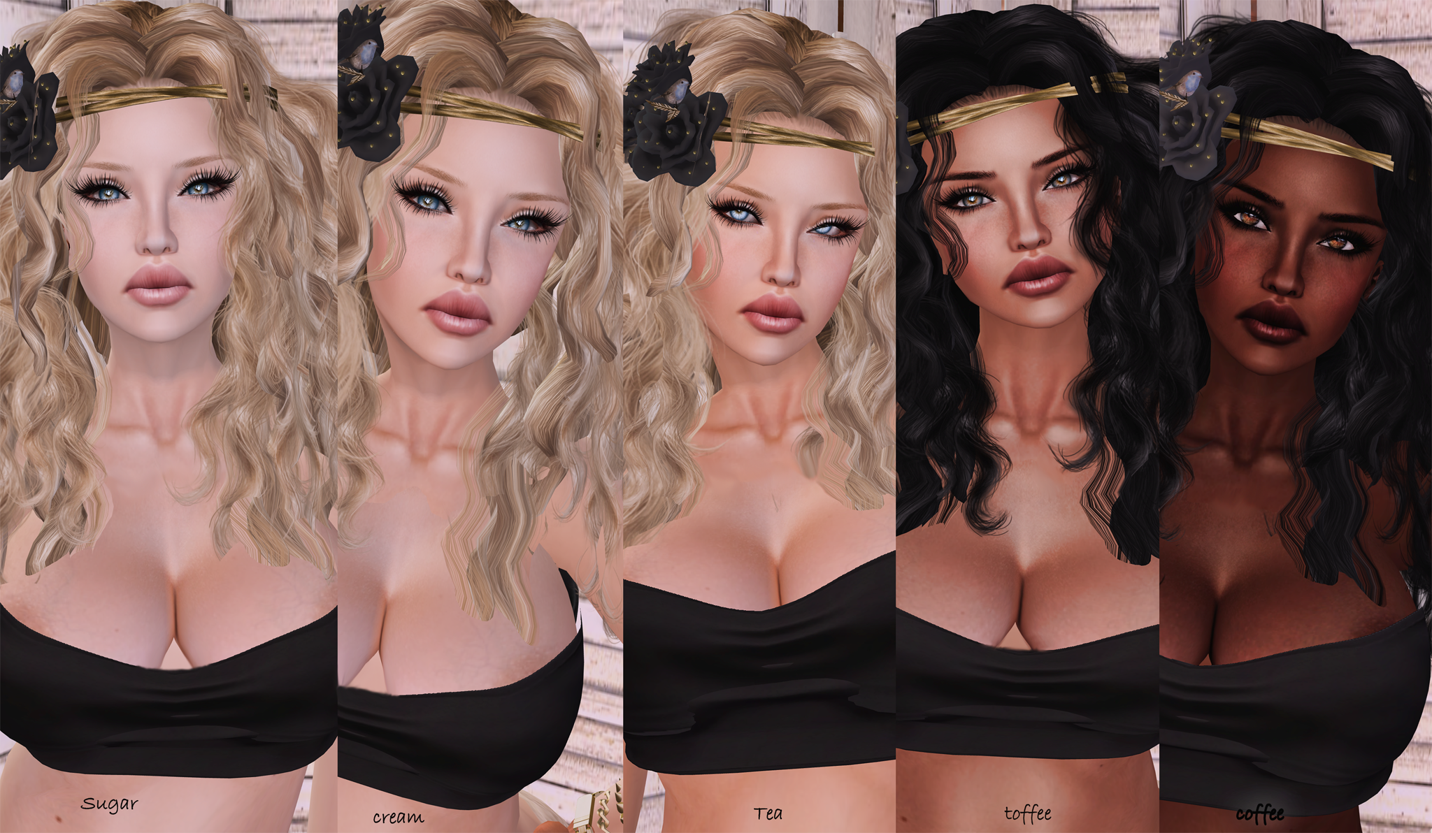 I come to you today with a new Skin from Orage Creations by the name of Megan. She comes in Sugar, Cream, Tea, Toffee & Coffee tones.