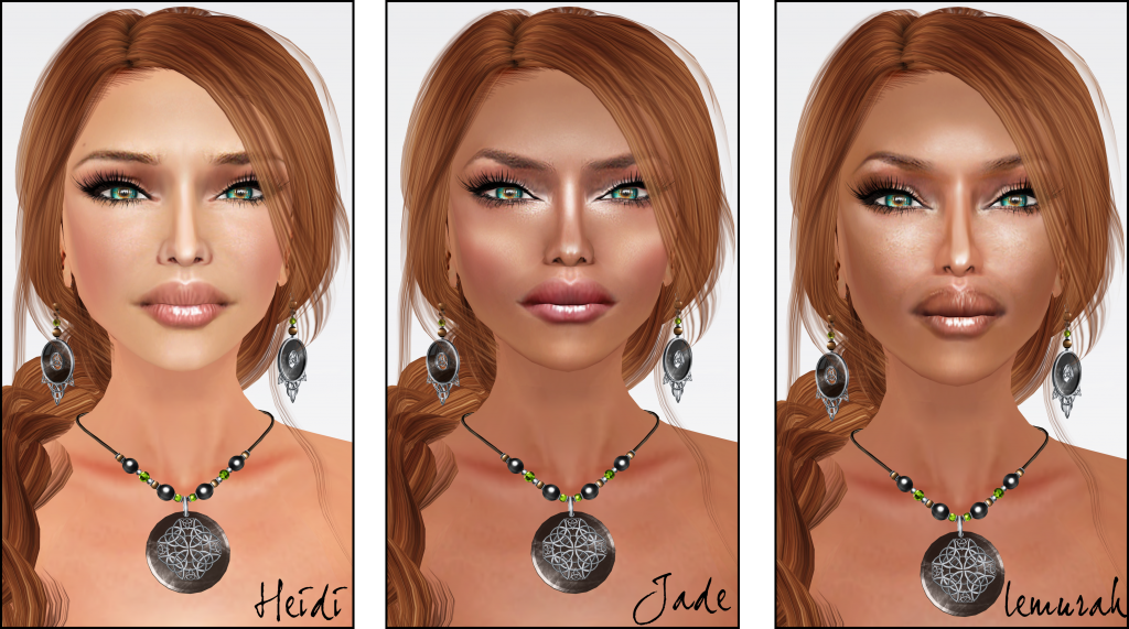 Orage Creations is proud to present Les Naturelles skins, available in 8 basic makeups (nude, pink, blue, cherry, rage, smoky I, smoky II and drama). Each comes with 2 hairbases (brown and blond) and 2 lower body hair options (blond and black), & 4 eyebrow shapes and physics. Below is my review of each with nude makeup option.