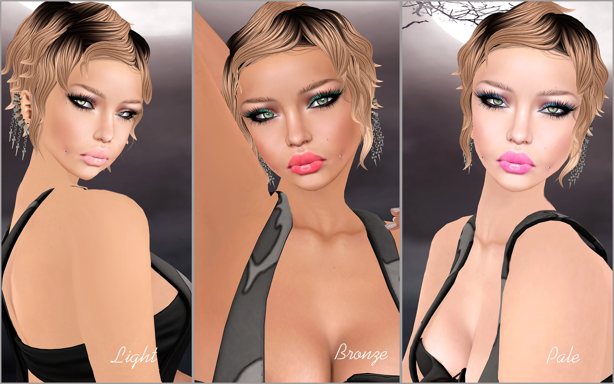There is a new girl in town, and she goes by the name of Johanna. She is quite beautiful and she comes in 3 tones, 5 makeups, 4 brow colors and 2 cleavage options. Paired with my new earrings from BenS Beauty, this is a peek at what I came up with.